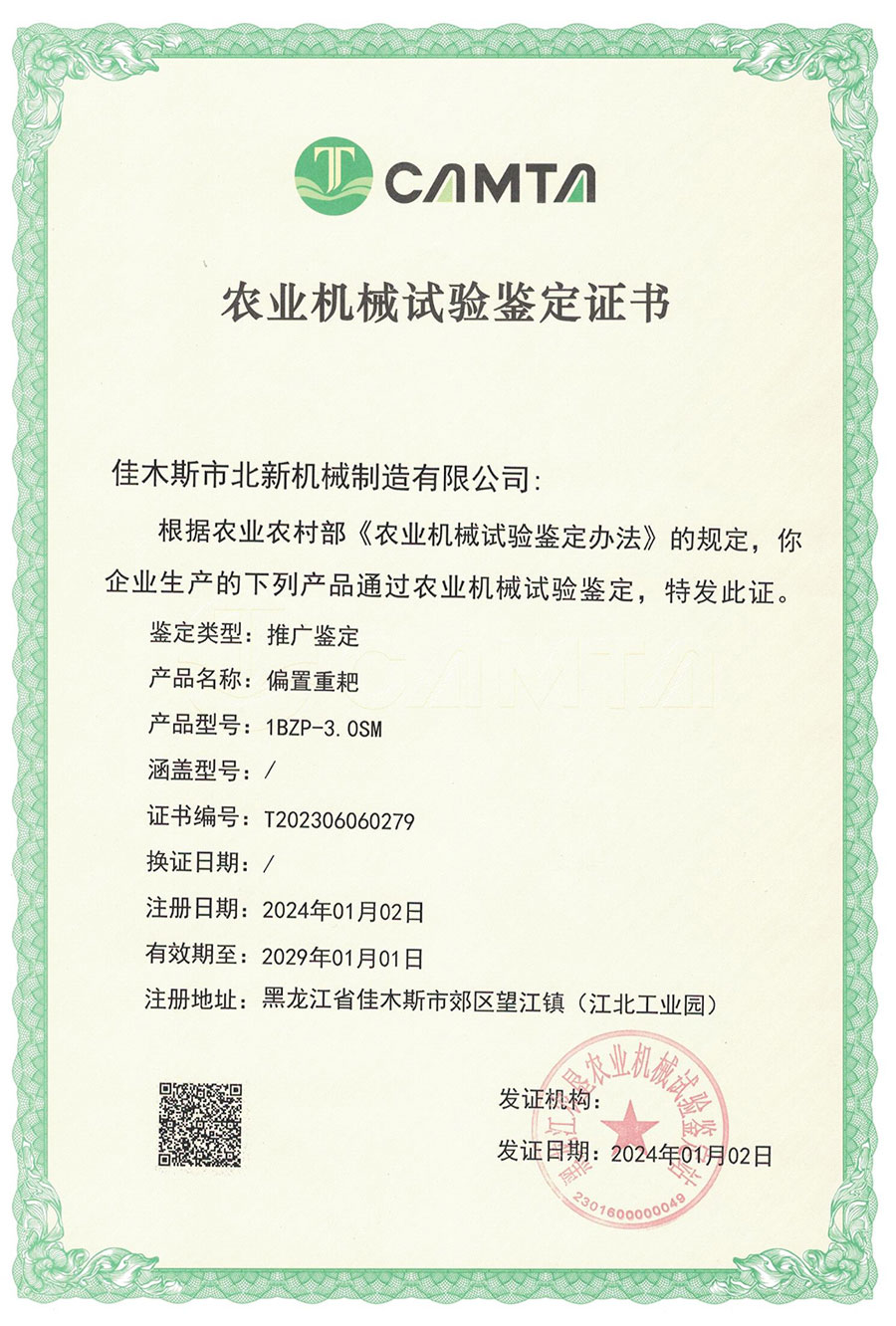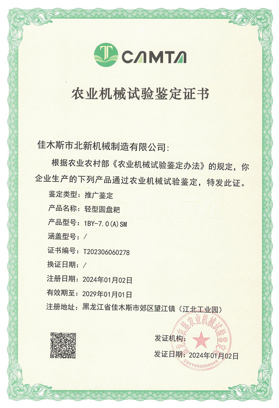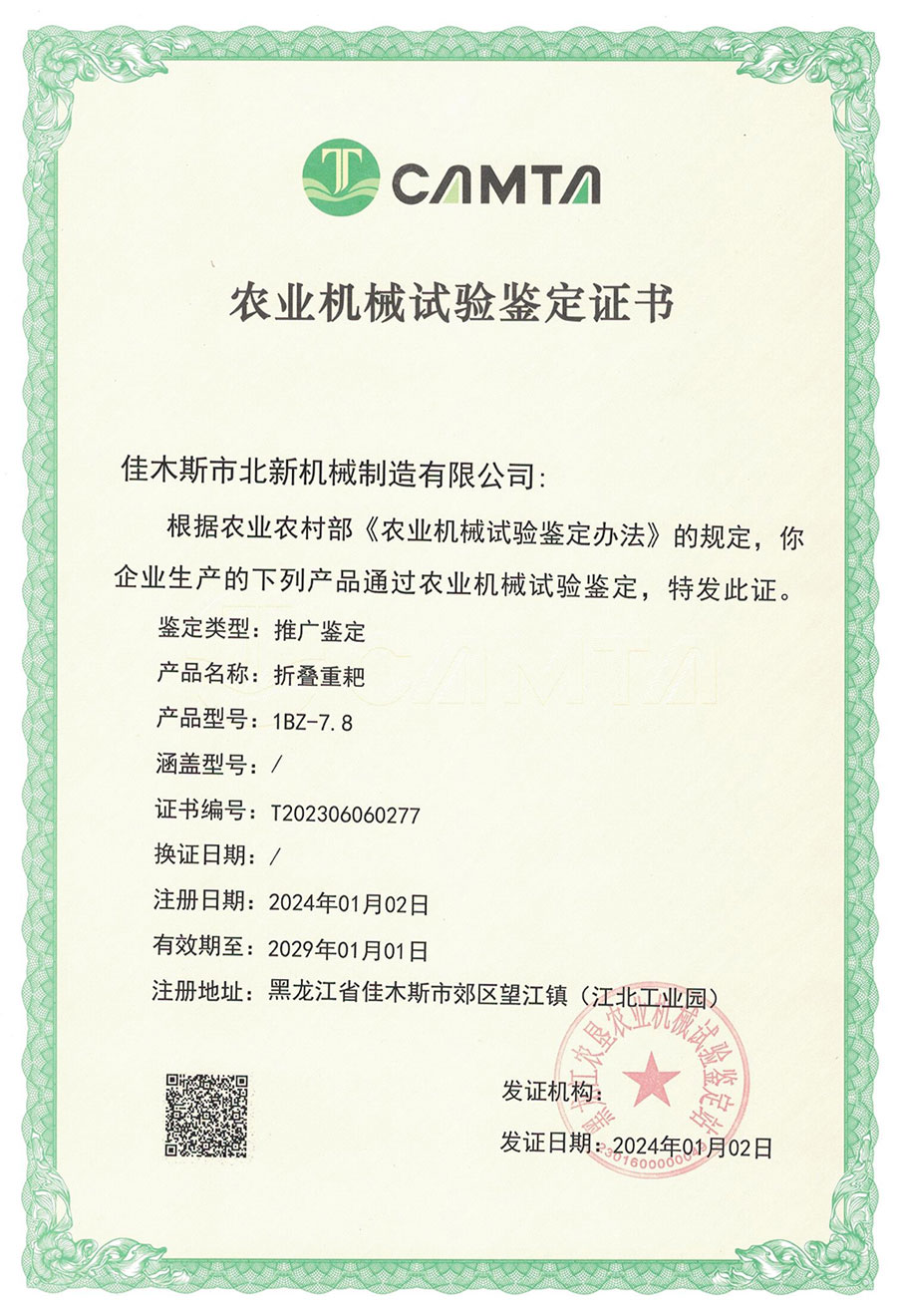 農(nóng)業(yè)機械試驗鑒定證書