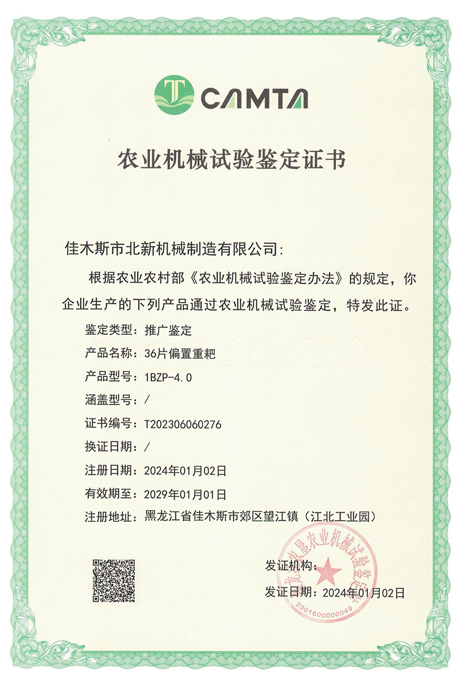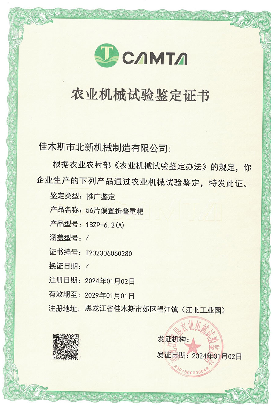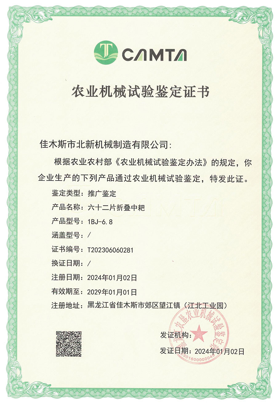農(nóng)業(yè)機械試驗鑒定證書